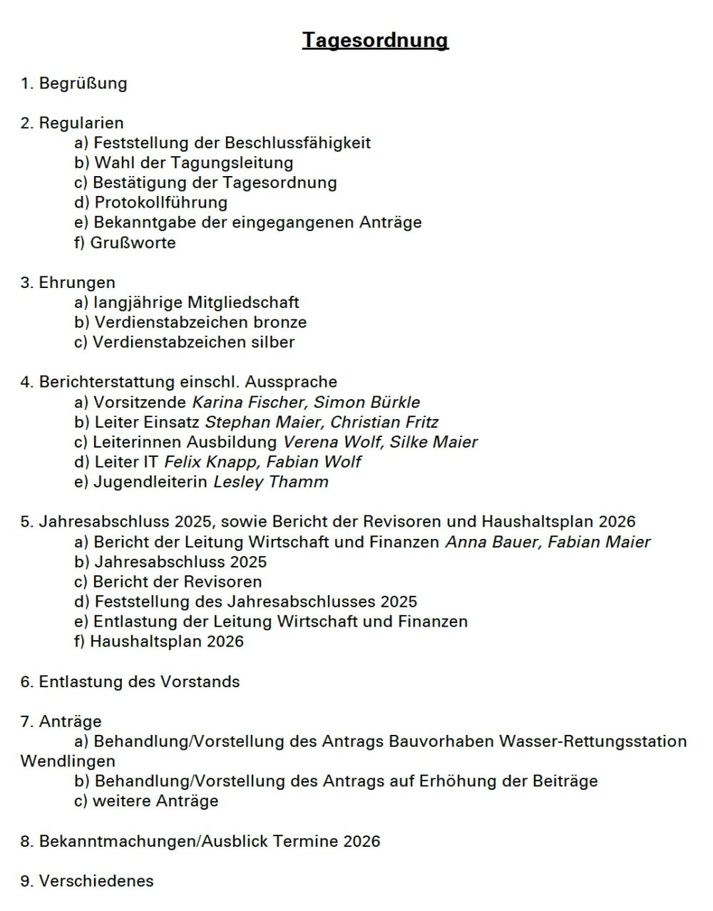 Jahreshauptversammlung 2026